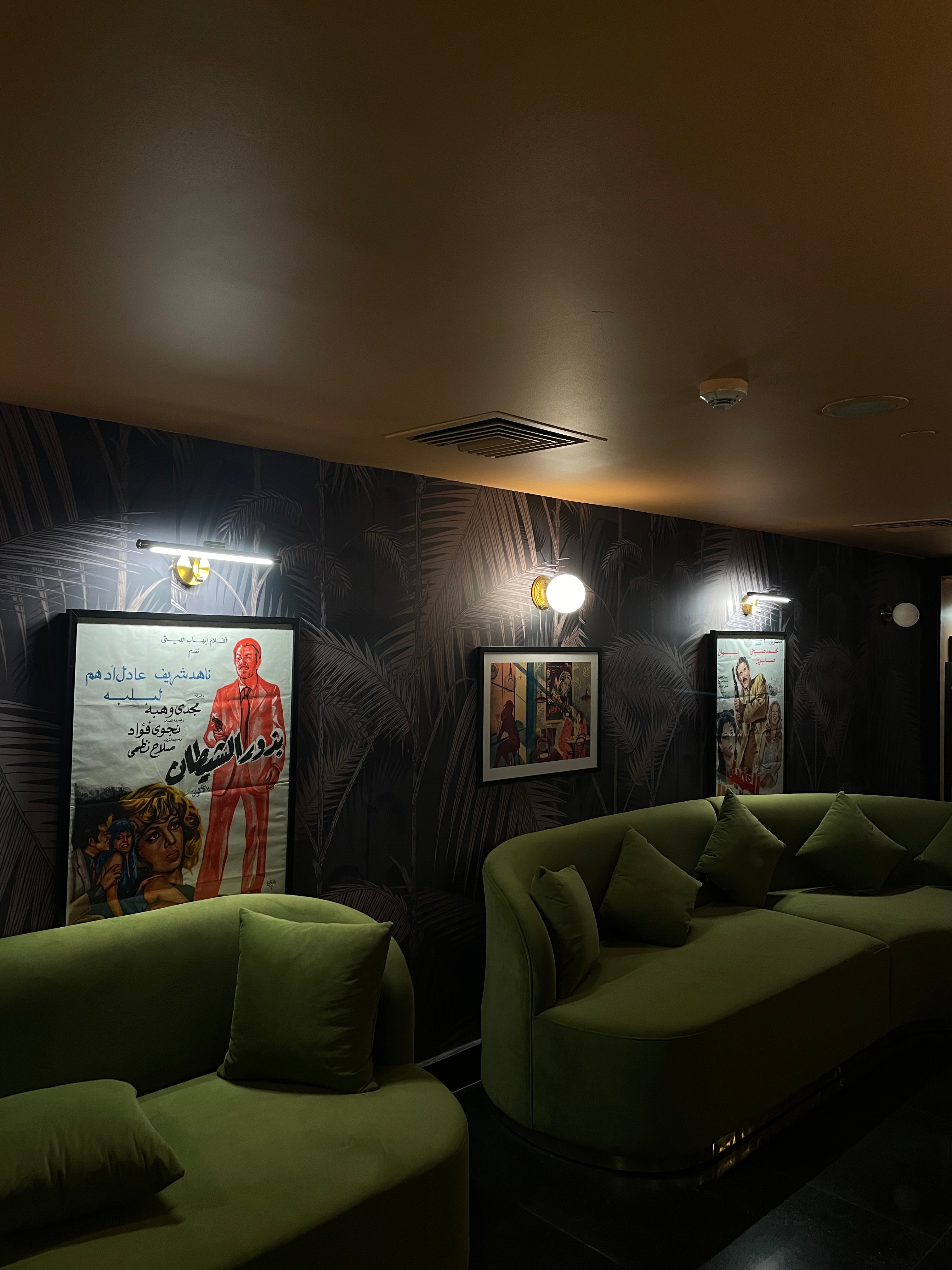 Featuring original vintage movie posters frames that adds just the right vibe to a cinema.