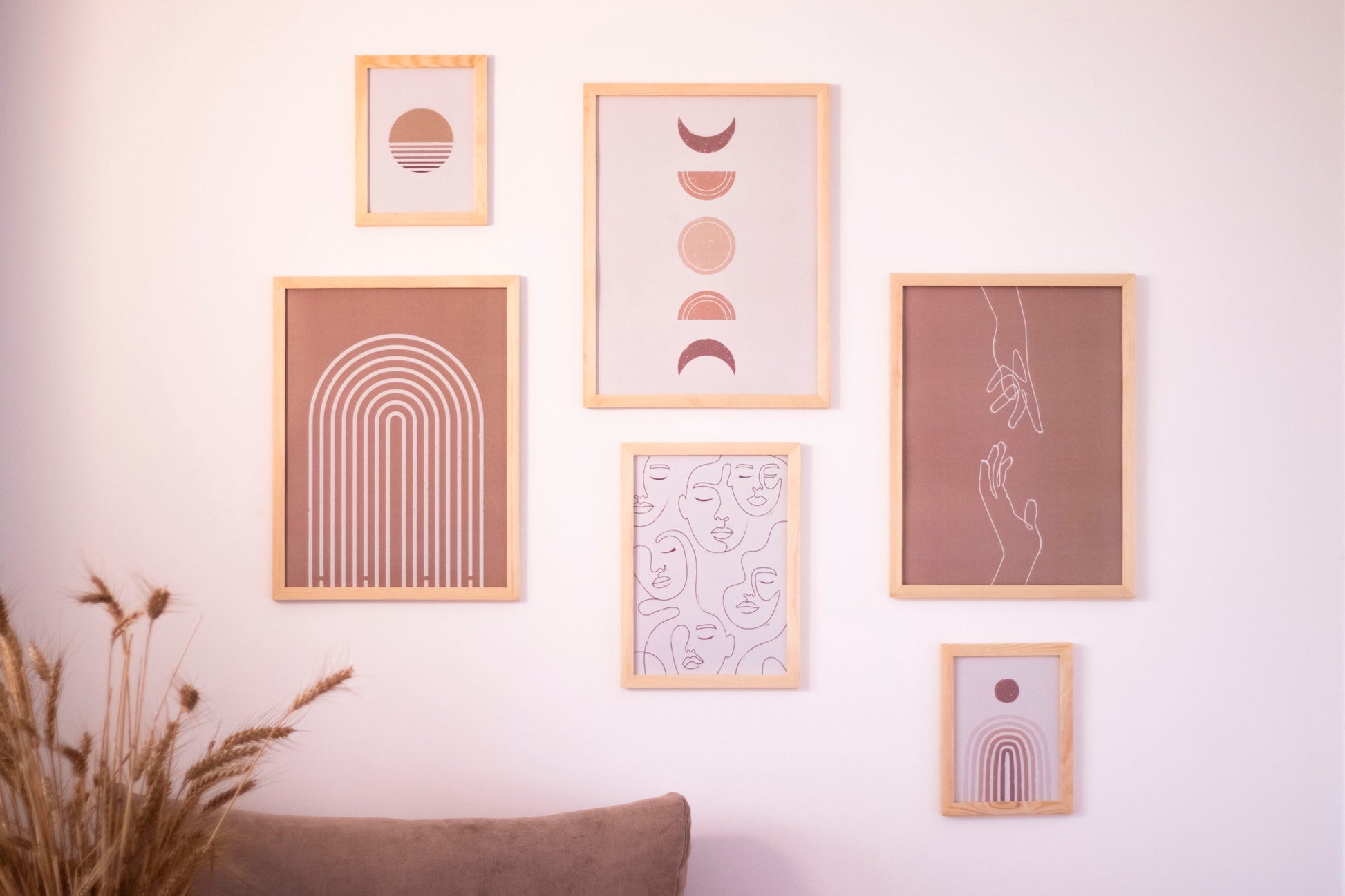 Crafted with premium-quality prints, this large set is available in multiple sizes, allowing you to customize the arrangement to fit your wall perfectly. The unique combination of celestial beauty and boho elegance makes this set a standout piece in any modern or eclectic interior.