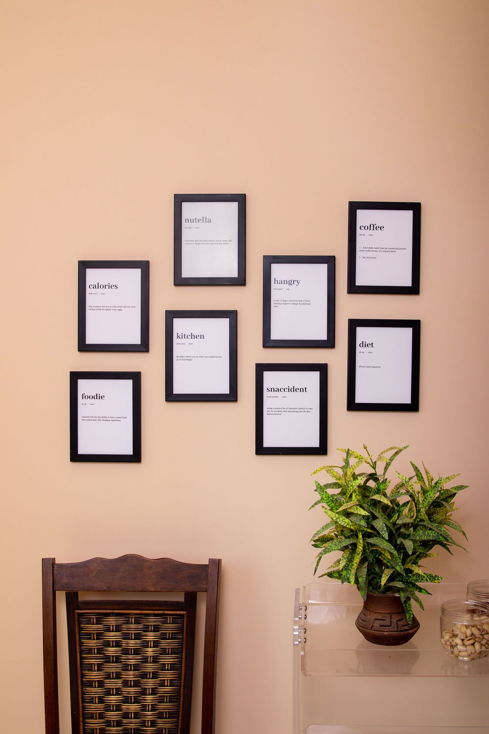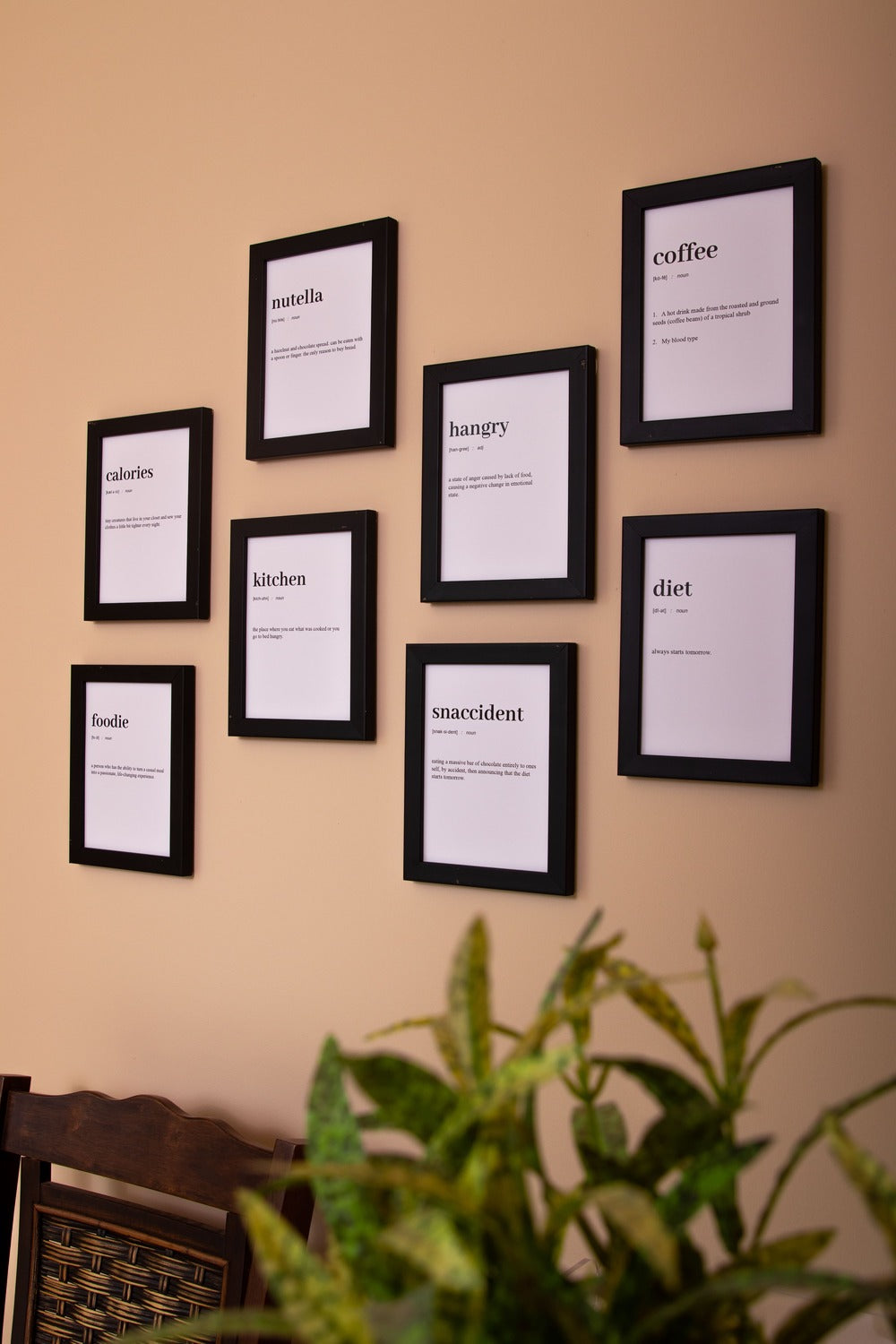 Add charm to your kitchen or dining area with this set of 7 black frames featuring fun food and coffee quotes. Perfect for kitchen wall decor, cafés, or dining rooms, these sleek frames bring humor and style to any space. A great gift for coffee lovers and foodies!