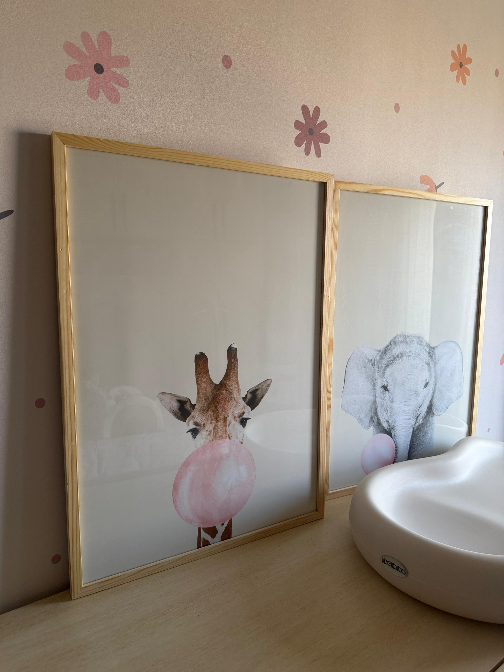 A charming set of two nursery frames featuring soft, fun designs that bring color, joy, and personality to the room. Perfect for creating a lighthearted and cozy atmosphere, this set turns your nursery into a sweet and cheerful space full of imagination.