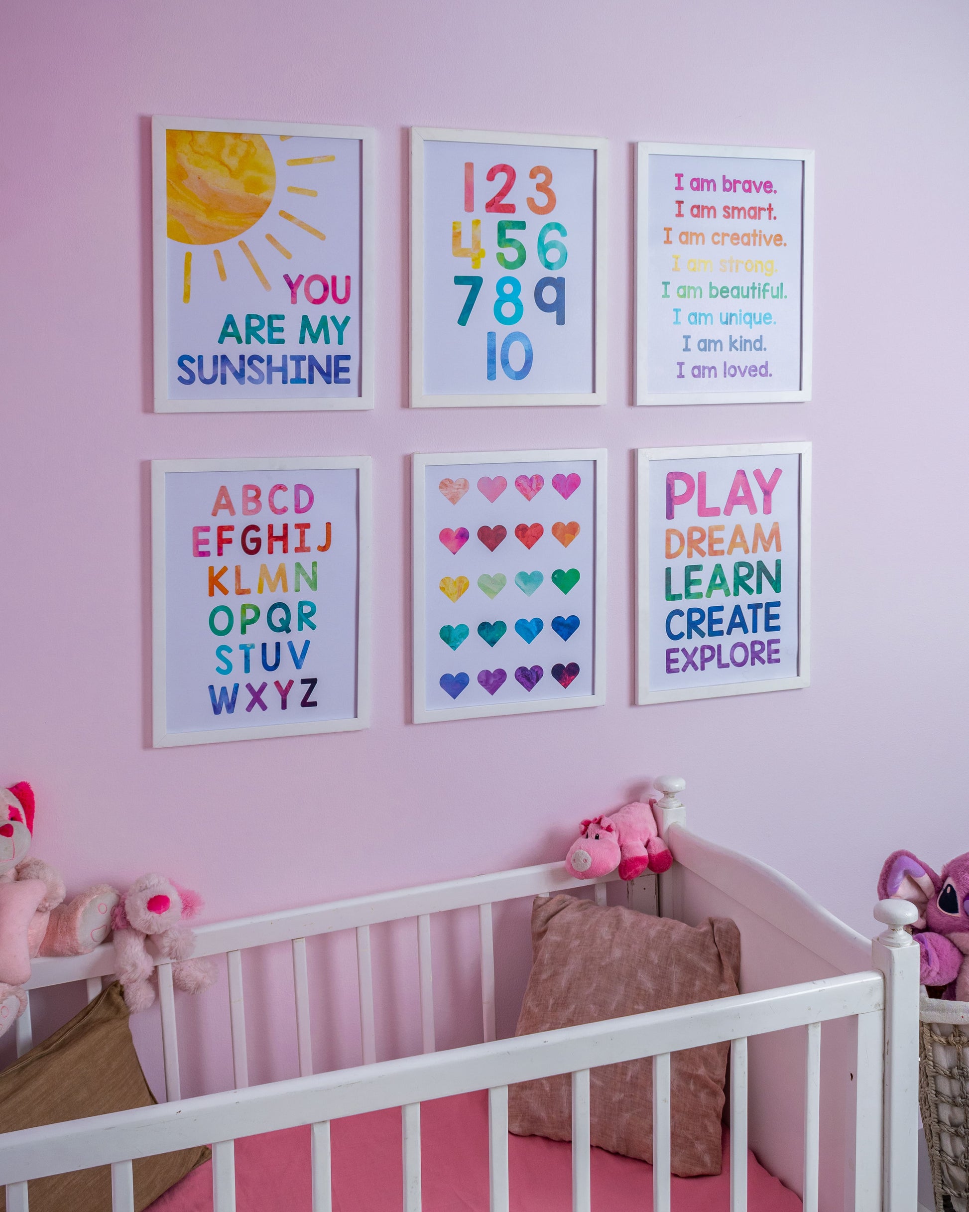 A cheerful set of 6 frames to brighten up your nursery. Featuring rainbow-inspired designs and sunny colors, this framed wall art is perfect for joyful, light-filled rooms. (Rainbow Edition)