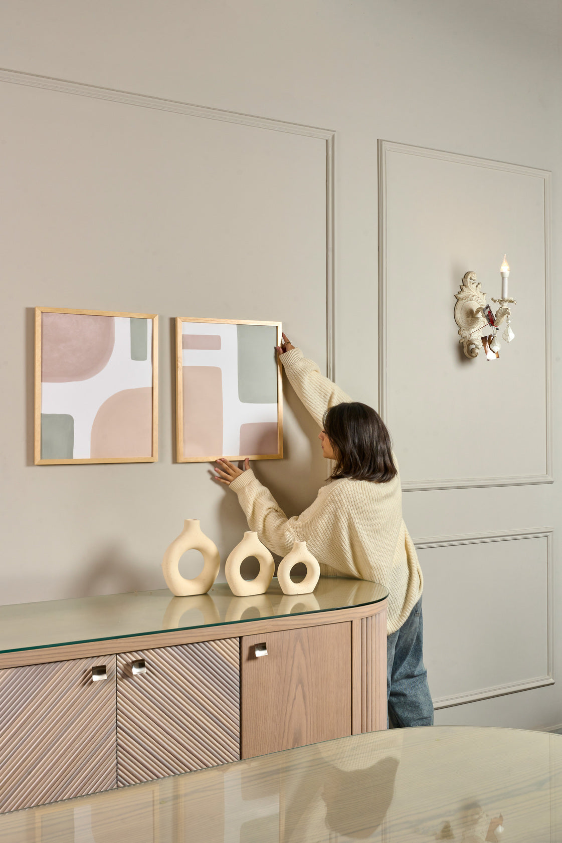 Add soft elegance to your space with these pastel abstract wall art prints. Featuring blush pink and sage green shapes with light wood frames, this modern set is perfect for living rooms, bedrooms, and nurseries. Ready to hang.