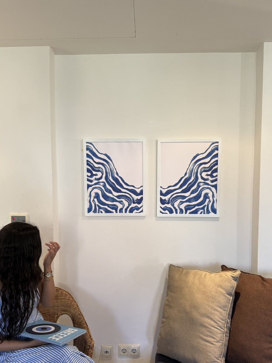 This abstract 2-piece wall art set captures the rhythmic motion of ocean waves with bold, flowing navy lines. Perfect for modern coastal interiors or minimalist spaces in need of a calming, artful touch.