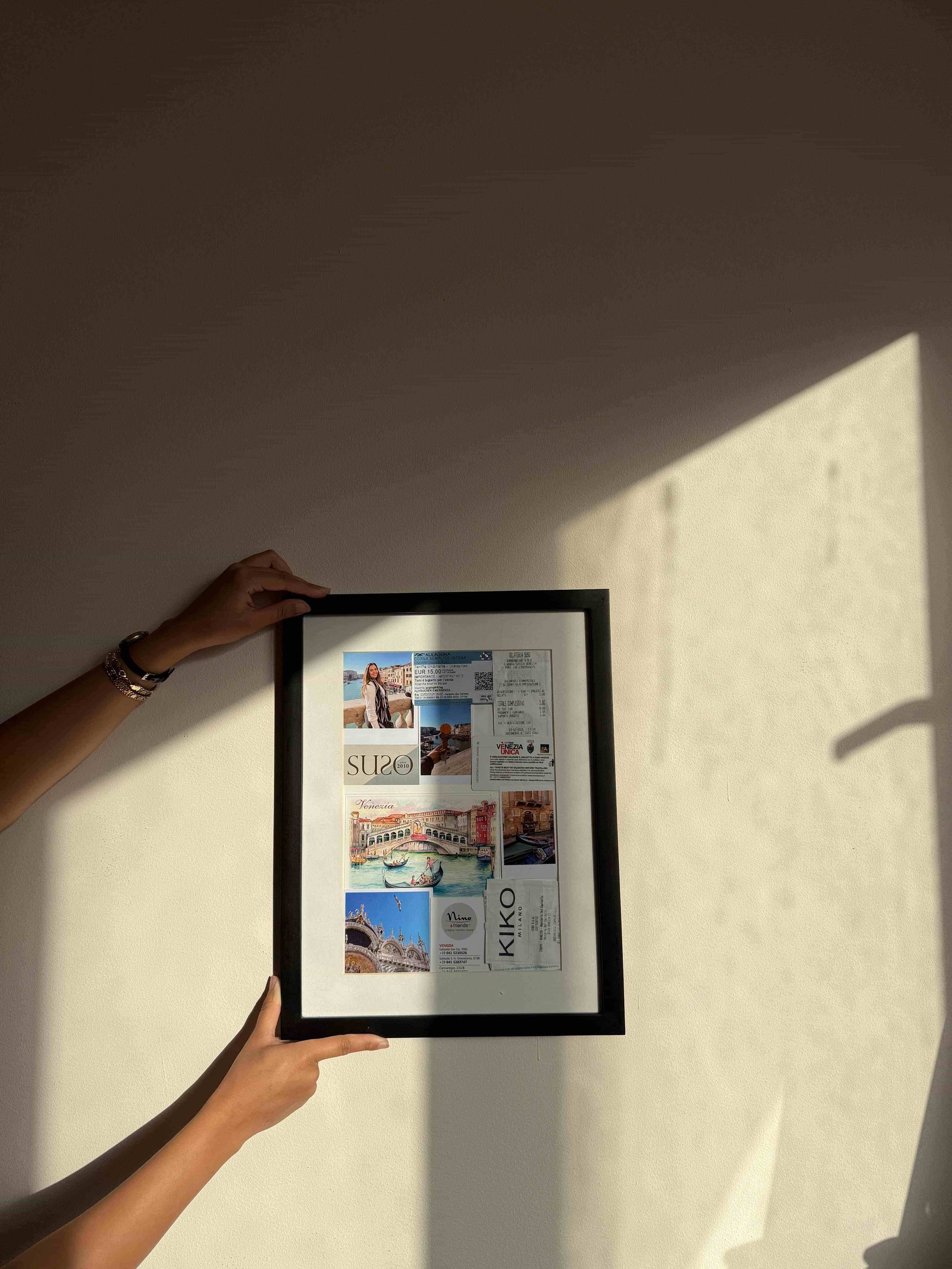 The Travel Memory Dump frame is perfect for displaying and protecting souvenirs, tickets, and keepsakes from your travels. Keeps items safe while turning your memories into a unique piece of art.